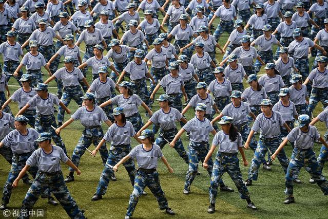 高校军训女生挥“匕首”学防身 大喊“杀”