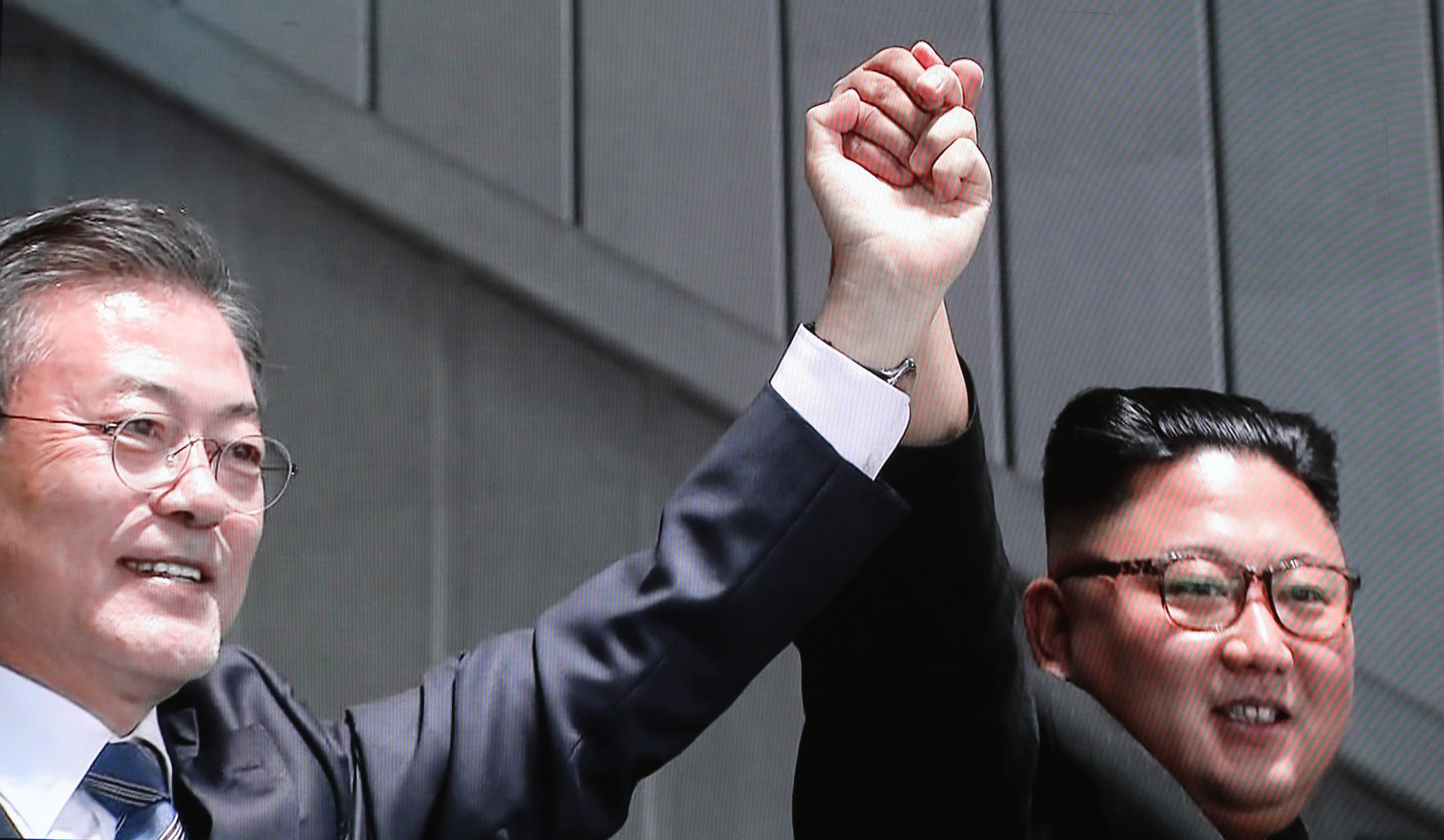 当地时间2018年9月19日,朝鲜平壤,韩国总统文在寅访朝第二日,同金正恩在朝鲜五一体育场,与15万名朝鲜观众一同观看大型团体操艺术表演并发表演说。来源:东方IC