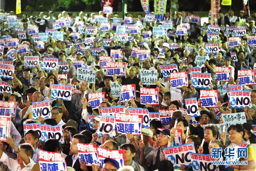 9月19日,在日本东京,民众手持标语参加集会。当日,近5000人在东京日比谷公园内参加反对新安保法集会。新华社记者 杜潇逸 摄