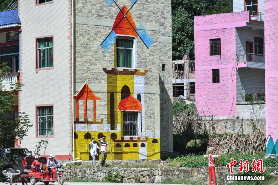 9月20日,色彩斑斓的“彩绘村”凭借其独特的风景吸引游客前来游览。中新社记者  任东 摄