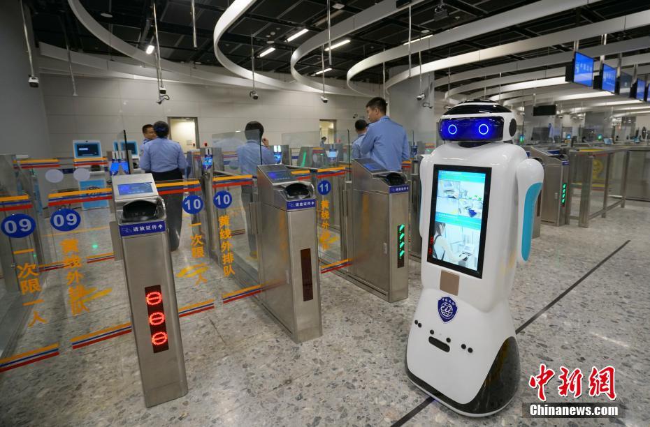 广深港高速铁路香港段开通前夕,香港西九龙站内的内地口岸区首次向媒体开放,中新社记者亲身体验西九龙站“一地两检”通关程序。内地口岸区设人工查验通道30条,入出境各15条;设自助通道60条,入出境各30条。据西九龙出入境边防检查站负责人艾锋介绍,内地口岸区的流量设置、边检查验通道设置完全能够满足高铁香港段的客流量需要,高铁香港段开通后,会确保中国公民候检时间不超过30分钟,同时会为外国人出入境提供相应的便利。 中新社记者 张炜 摄