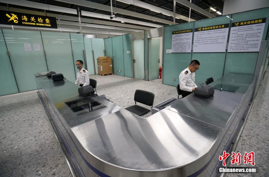 广深港高速铁路香港段开通前夕,香港西九龙站内的内地口岸区首次向媒体开放,中新社记者亲身体验西九龙站“一地两检”通关程序。内地口岸区设人工查验通道30条,入出境各15条;设自助通道60条,入出境各30条。据西九龙出入境边防检查站负责人艾锋介绍,内地口岸区的流量设置、边检查验通道设置完全能够满足高铁香港段的客流量需要,高铁香港段开通后,会确保中国公民候检时间不超过30分钟,同时会为外国人出入境提供相应的便利。 中新社记者 张炜 摄