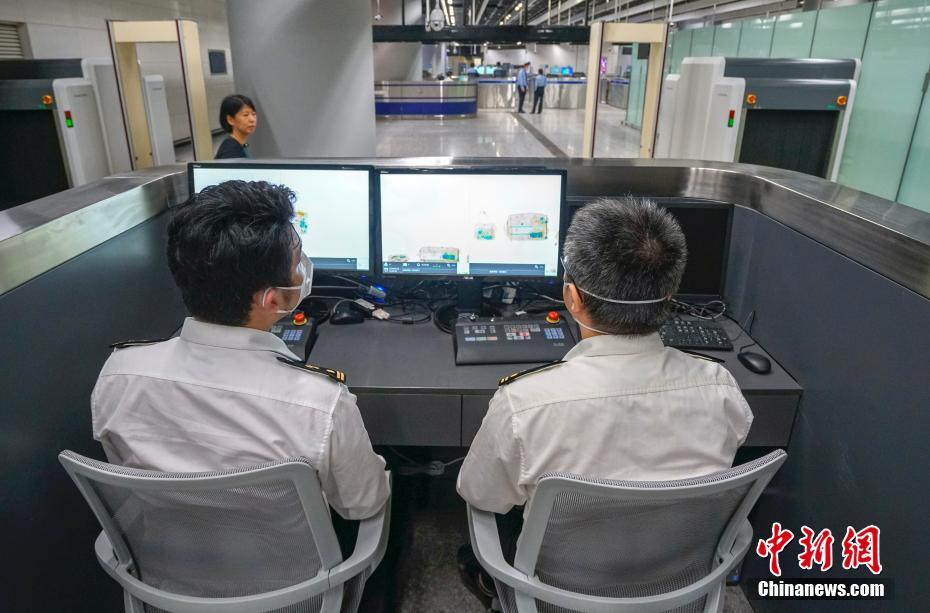广深港高速铁路香港段开通前夕,香港西九龙站内的内地口岸区首次向媒体开放,中新社记者亲身体验西九龙站“一地两检”通关程序。内地口岸区设人工查验通道30条,入出境各15条;设自助通道60条,入出境各30条。据西九龙出入境边防检查站负责人艾锋介绍,内地口岸区的流量设置、边检查验通道设置完全能够满足高铁香港段的客流量需要,高铁香港段开通后,会确保中国公民候检时间不超过30分钟,同时会为外国人出入境提供相应的便利。 中新社记者 张炜 摄