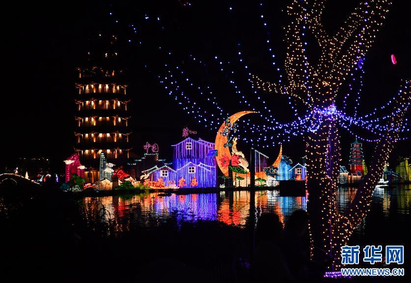 9月19日在昆山周庄古镇拍摄的花灯。 当日,2018海峡两岸(昆山)中秋灯会亮灯仪式在江苏昆山举行,为期32天的中秋灯会启幕。本届灯会主题为“花开并蒂·灯映两岸”,灯会的彩灯设计和活动策划充分吸收利用两岸同根同源的文化基因、民俗传统、创新理念与前沿科技,共设周庄古镇、周庄台湾老街、周庄香村·祁庄、昆山开发区慧聚广场四大灯区,在风格迥异的都市、古镇、水乡与田园中,展示灯与影的曼妙和璀璨。 新华社记者 季春鹏 摄