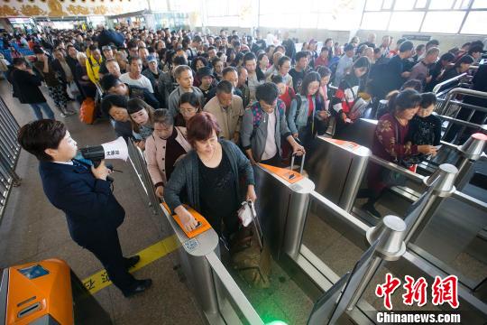 9月21日,山西太原火车站,民众准备乘车出行。随着中秋佳节即将到来,中国多地铁路迎来客流出行高峰。期间,中国铁路太原局预计发送旅客90.5万人次,高峰日预计在9月24日,发送旅客28.1万人,中秋小长假客流以探亲流、学生流为主。图为民众正在排队检票,准备乘车出行。张云 摄。图片来源:中新网