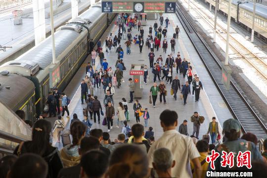 民众走下站台,准备乘车出行。张云 摄。图片来源:中新网