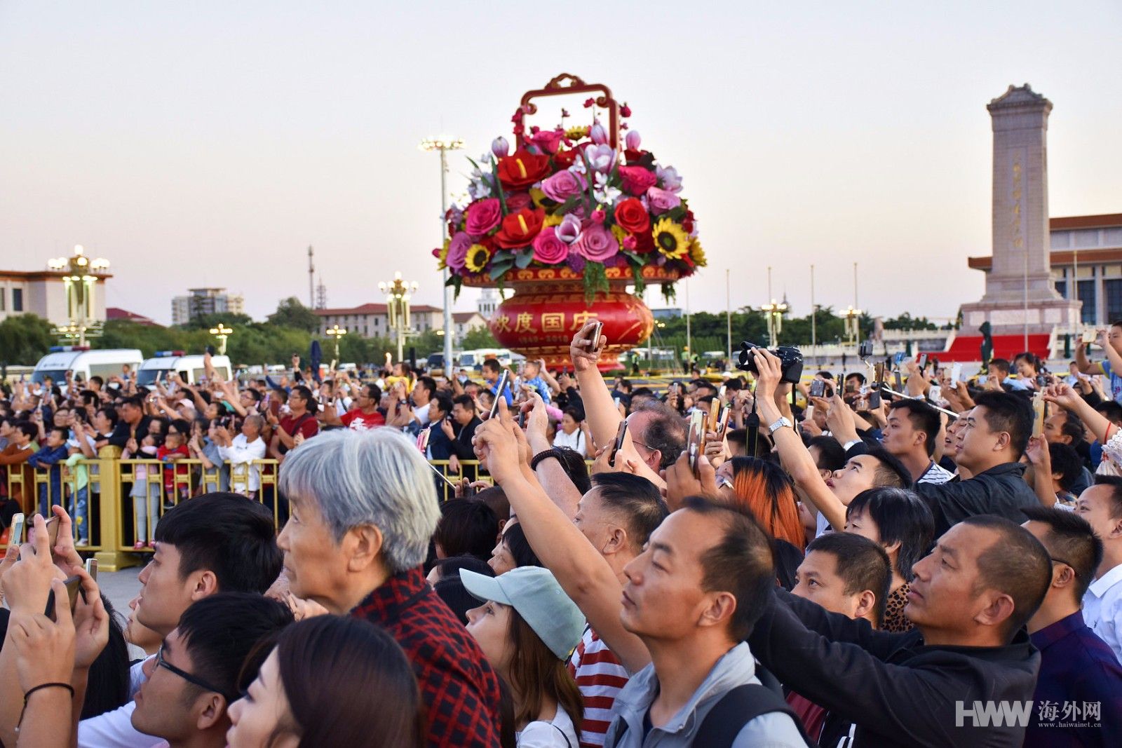 天安门广场"祝福祖国"巨型花篮主体亮相