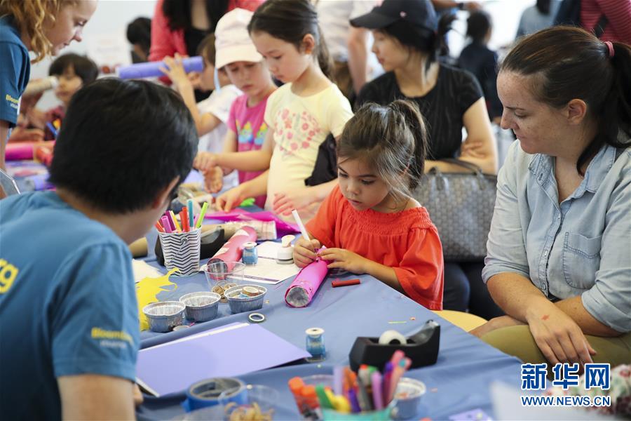 9月22日,在美国纽约华人博物馆,孩子们学做万花筒。  新华社记者王迎摄