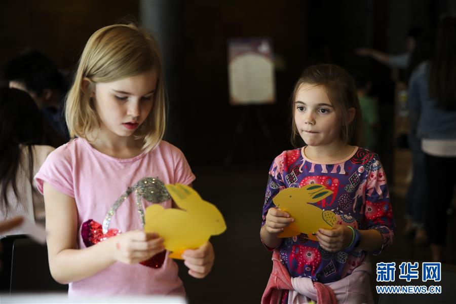 9月22日,在美国纽约华人博物馆,孩子们制作玉兔造型玩偶。新华社记者王迎摄