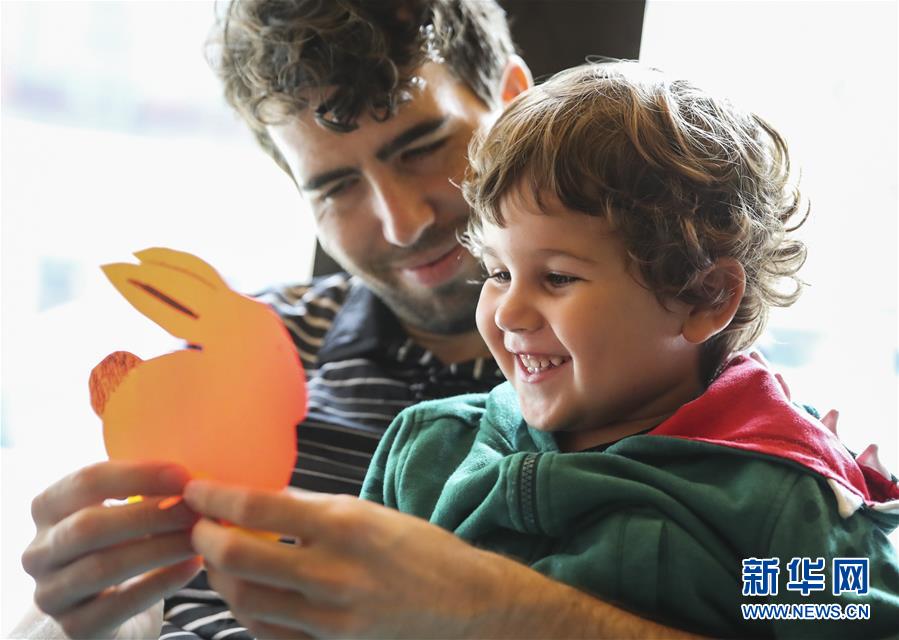9月22日,在美国纽约华人博物馆,一对父子制作玉兔造型玩偶。 当日,纽约华人博物馆举行中秋节文化体验活动,孩子们学习中国书法、听中秋故事、制作皮影玩偶和月饼,体验中国传统文化。 新华社记者王迎摄