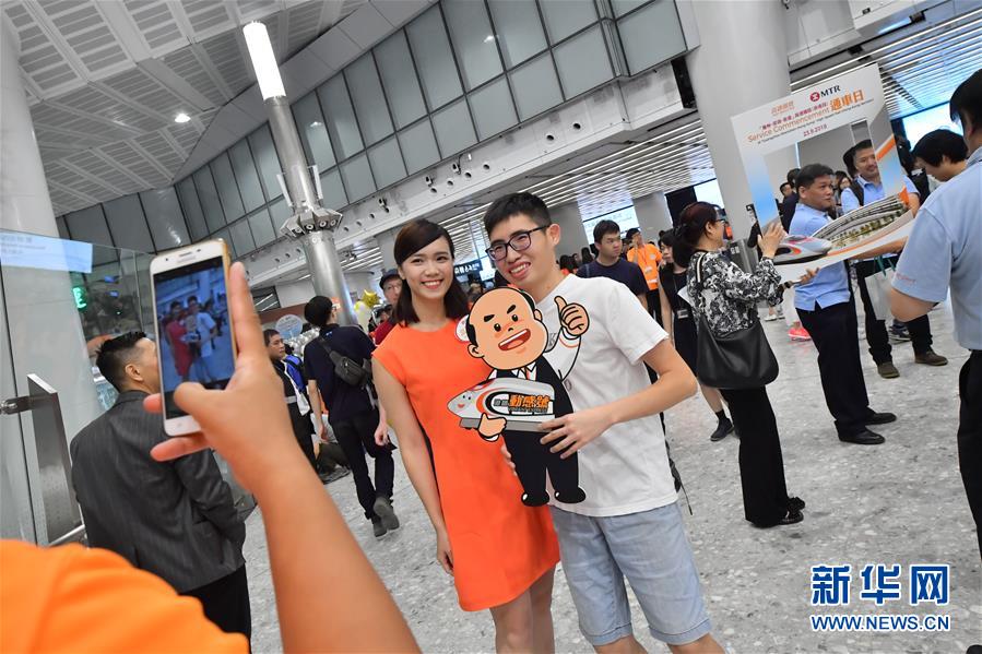 9月23日,乘客在香港西九龙站留念。新华社记者 吕小炜 摄