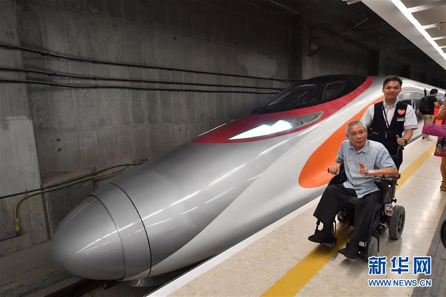 9月23日,在香港西九龙站,乘客在列车前留影。 新华社记者 吕小炜 摄