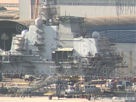 恰逢中秋佳节之际,网友曝光了中国海军辽宁号航母的最新照片。近日有网友@热武器时代的爱情故事 曝光我辽宁舰大修的最新施工进度,在该舰上层建筑的后半部,航空舰桥上方位置疑似涂刷"16"舷号的工程,目前"16"两数字已清晰可见。这是我国首次在航母上层建筑上涂刷舷号,充满美式航母风格。