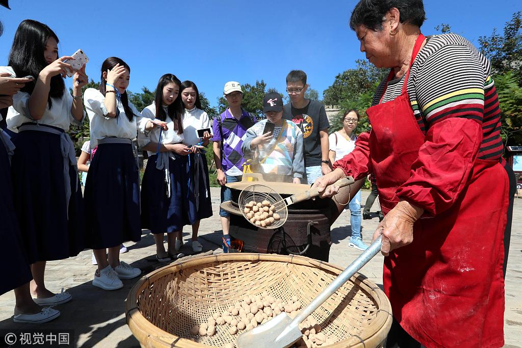 2018年9月22日,河南济源,中秋小长假第一天,千人吃“土”大会在河南济源王屋山道境广场举行,5000余斤土馍被千余名“大胃王”与游客席卷一空。王屋山土馍是愚公家乡济源市王屋山区的传统土特产。 王中举