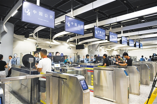 上图 9月23日拍摄的香港西九龙站“一地两检”通关口。新华社记者 吴 涛摄
