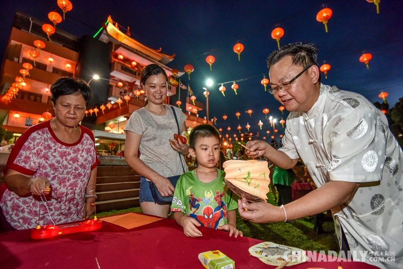 2018年9月24日,马来西亚华人迎中秋 9月23日,在马来西亚巴生,一名长者为一名男孩点灯。 9月23日,巴生当地华人举行迎中秋庆祝活动,以打灯笼、赏花灯等方式迎接中秋佳节。
