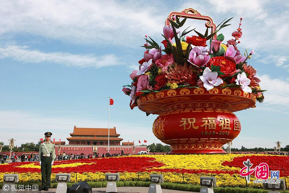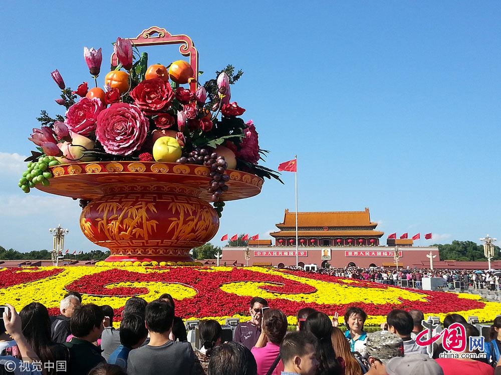 2014年09月30日,北京天安门广场“祝福祖国”大型花篮。张耀东摄影