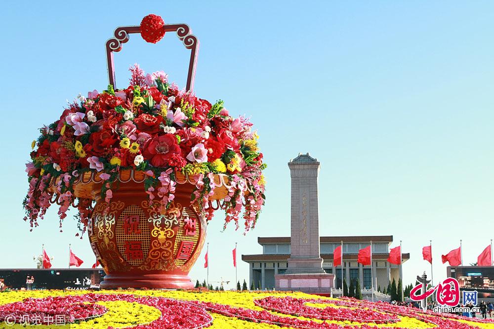 2013年10月1日,北京天安门广场“祝福祖国”大型花篮。王振摄影