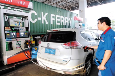 国家发展改革委发布消息,按照现行成品油价格形成机制,自2018年9月3日24时起,国内汽油、柴油价格每吨分别上调180元和170元。乙醇汽油作为传统汽油的替代品,有望成为市场上汽油产品的主流。图为江苏省连云港市一家加油站的工作人员给车辆加油。王 春摄(新华社发)