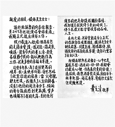 台湾著名歌手费玉清昨日上午向当地媒体公开发表了一封亲笔信,宣布将于2019年巡回演唱会结束后正式隐退,为45年来的演艺工作画上句号。他表示决定退休的最主要原因是双亲的去世让他感到失去人生归属,所以想要停下脚步,从容品味人生风景。
