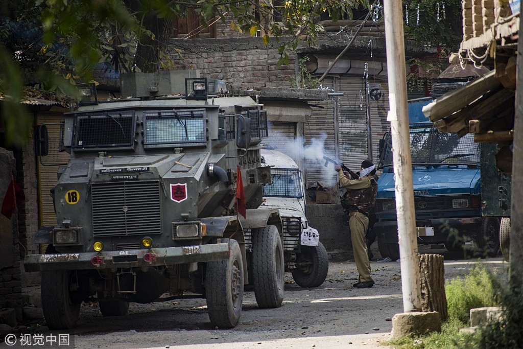 当地时间2018年9月27日,印控克什米尔斯利那加,印度守军与当地叛军发生冲突,造成三名叛军士兵和一名印度士兵死亡。