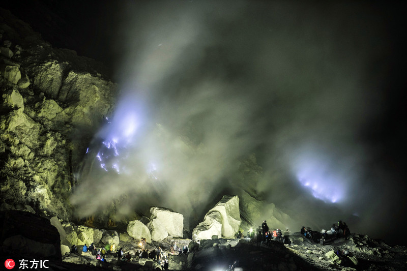 印尼工人火山口采硫磺养家糊口。