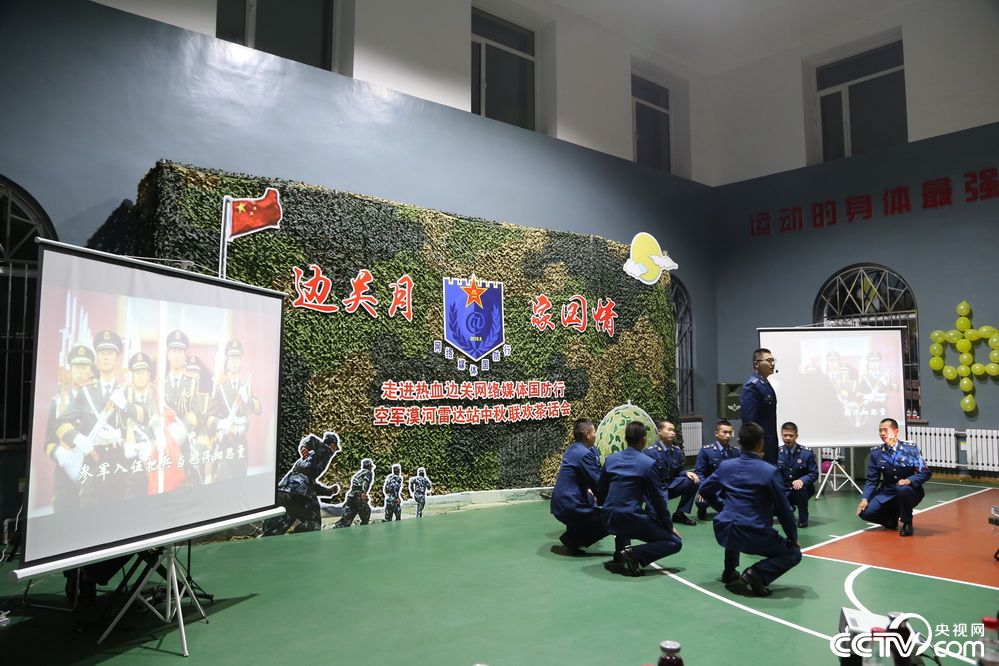 漠河雷达站官兵在中秋联欢会上表演节目。