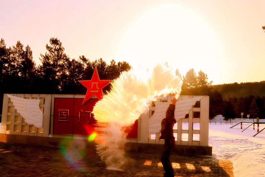 “泼水成冰”是官兵们冬日必有的户外活动 “北极哨所”供图