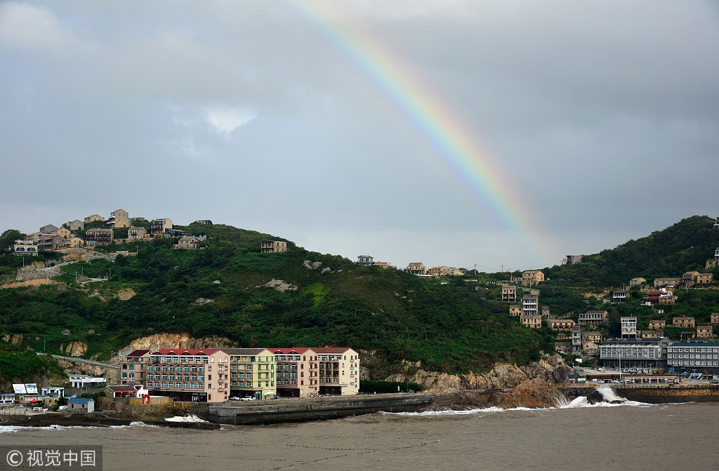 浙江台州:台风“潭美”临近 石塘镇车关上空现美丽彩虹