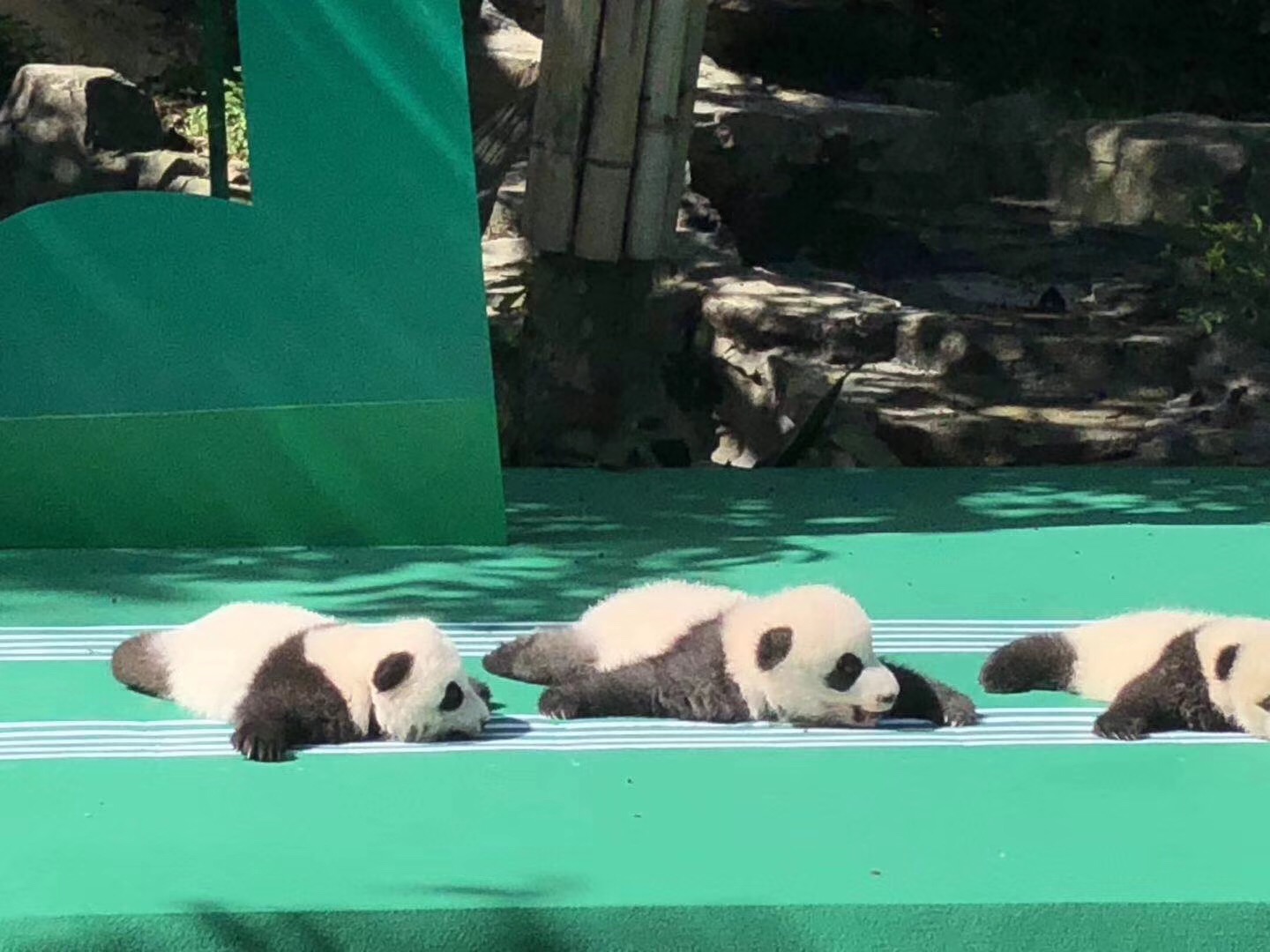 成都大熊猫繁育研究基地为2018年出生的12只大熊猫宝宝举行了一场别开生面的亮相活动。(来源:人民日报客户端 张文,@iPanda熊猫频道)