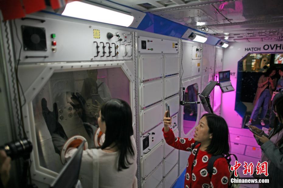 9月29日,原版引进NASA探索太阳系的《星球奇境》宇宙特展亮相天津大悦城。该展览曾于2017年2月在美国国家航空航天局(NASA)下属的太空博物馆——美国太空与火箭中心进行全球首展,现场展示了NASA半个世纪以来的航天探索成果。图为市民在1:1还原的国际空间站内体验。中新社记者 佟郁 摄