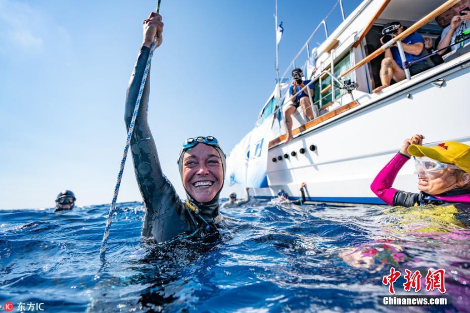 9月29日报道 来自意大利罗马的Alessia Zecchini被称为新一代自由潜水女皇。在2018巴哈马蓝洞深度赛中,意大利女选手Alessia Zecchini在最后一个比赛日,挑战有蹼恒重CWT107米成功,并刷新了纪录。在比赛过程中,Alessia Zecchini屏住呼吸超过3分半钟,以完成这一次不凡的挑战。从画面中,可以看到放松的Alessia采用的是很少人用的手前引导式自由落体,大部分人的自由落体都会把手放在身体两侧。手前式无疑能提供更好的流线型,以达到更好的自由落体速度,但是同样这个姿态会消耗一部分氧气,以及对胸腔柔韧性有更多的要求。