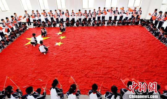 小学生用千条红领巾拼巨型国旗迎国庆