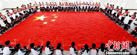 小学生用千条红领巾拼巨型国旗迎国庆