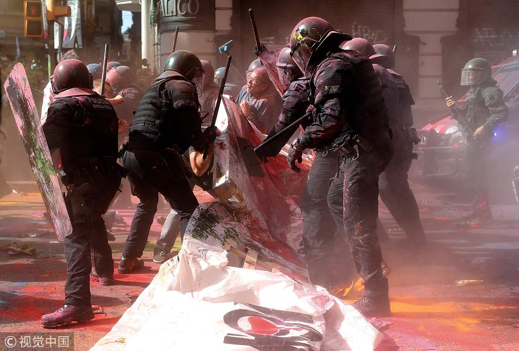加泰罗尼亚分离主义者举行抗议 警察遭粉末袭击浓墨重彩