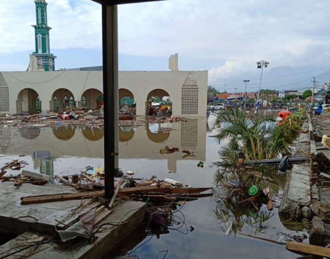 印尼中苏拉威西省巴路市遭遇海啸。(图源:台媒)