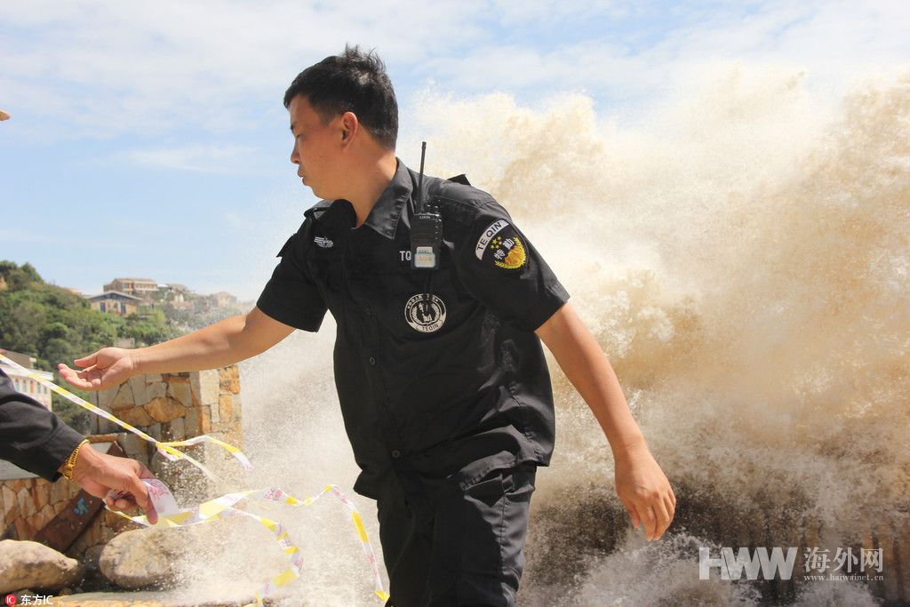 浙江温岭:十余米海浪惊涛拍岸 市民淡定围观