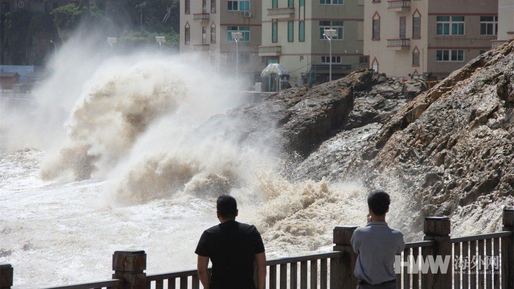 浙江温岭:十余米海浪惊涛拍岸 市民淡定围观