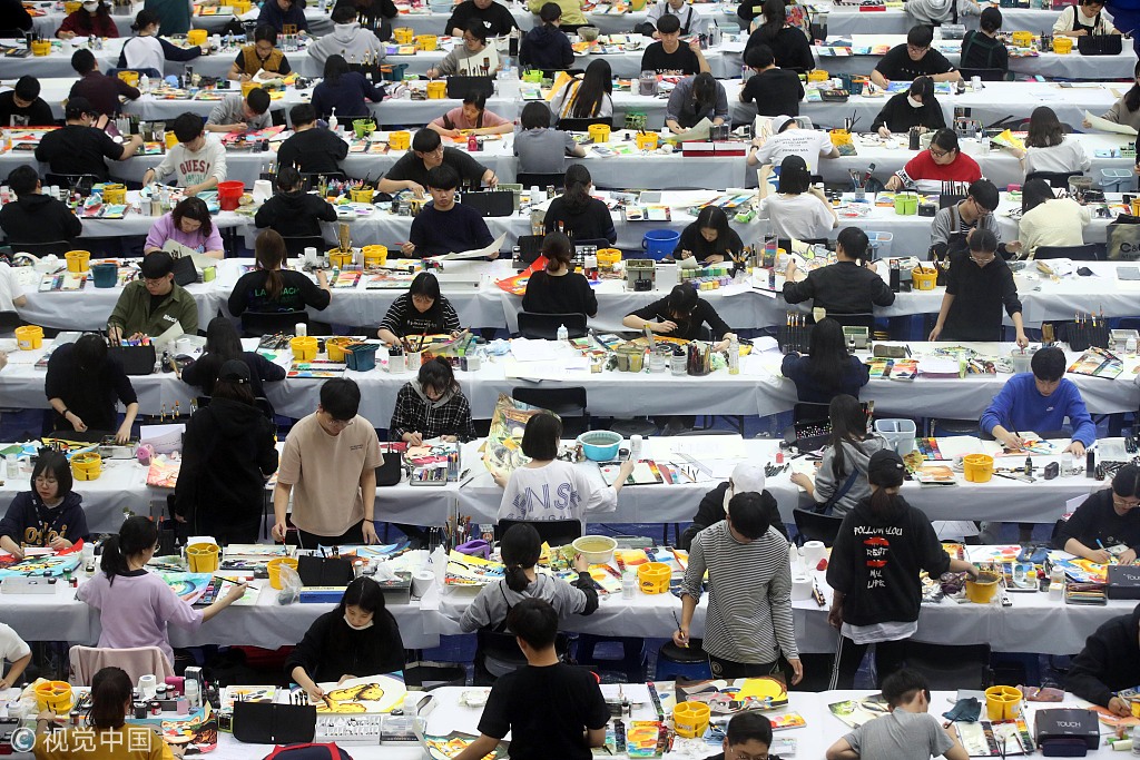 直击韩国美术招生考试现场 考生埋头作画场面壮观