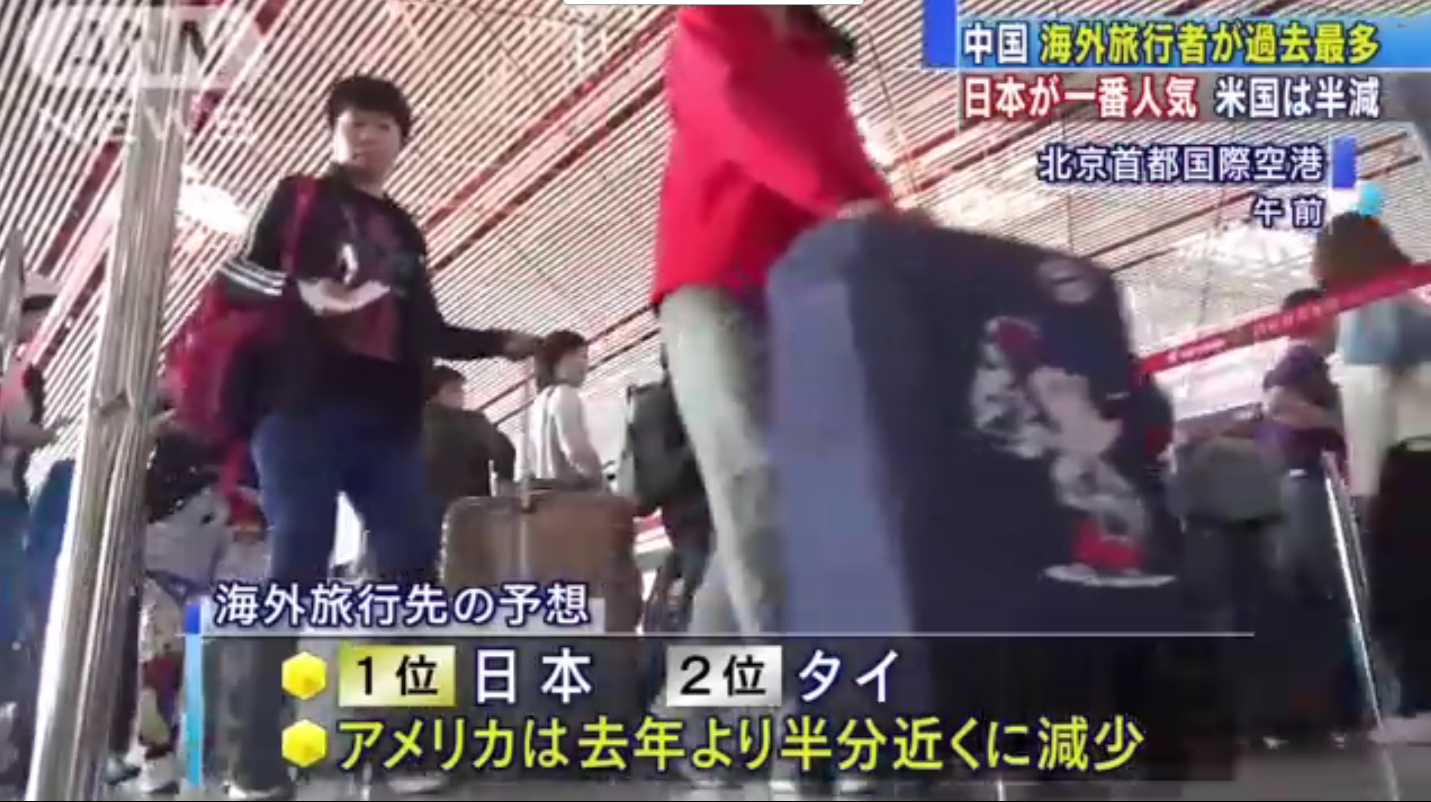 据报道,中国人出国旅行首选地是日本,其次是泰国。相反,赴美游客比去年减少近半。