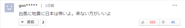 网友@gon*****:日本现在台风、地震很恐怖哟。最好是别来了。