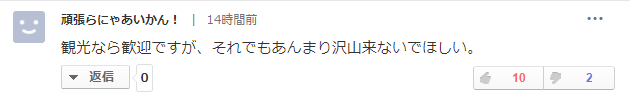 网友@頑張らにゃあいがん:你们来观光的话我们当然很欢迎,但是希望不要来太多。