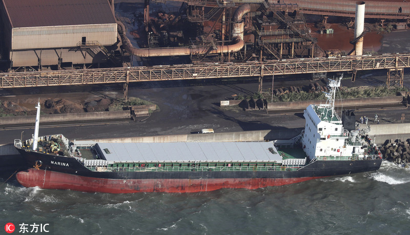 台风“潭美”席卷日本威力惊人 货轮遭强风失控撞护堤