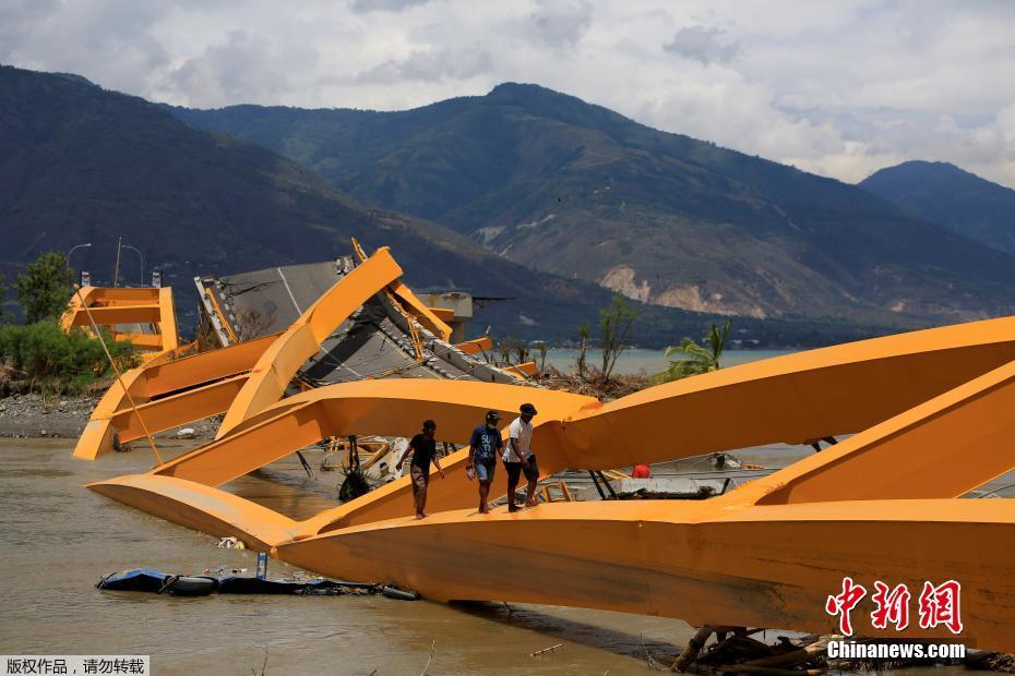 当地时间2018年10月7日,印度尼西亚帕卢,地震海啸灾区大桥坍塌成。据6日消息,印尼中苏拉威西省首府帕卢和栋加拉县强震和海啸造成的死亡人数已上升至1649人。目前搜救工作仍在继续。