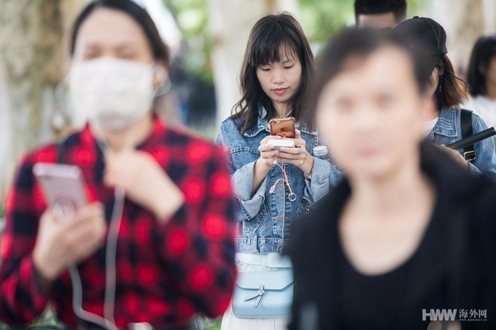 浙江省杭州市,国庆黄金周假期进入尾声,各大景区依旧人山人海。在景区的角落里,则是一群群人聚在一起低头玩手机。