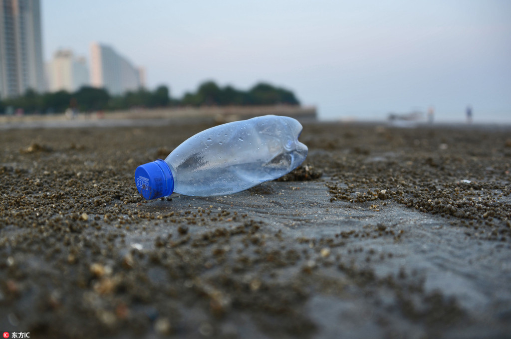 红橙黄绿蓝,海滩上留着各种颜色的垃圾。