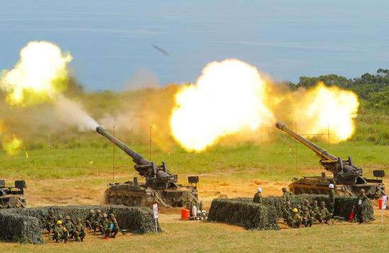 台军抗登陆实弹射击演练资料图。如今更像是年度例行的“烟火秀”。