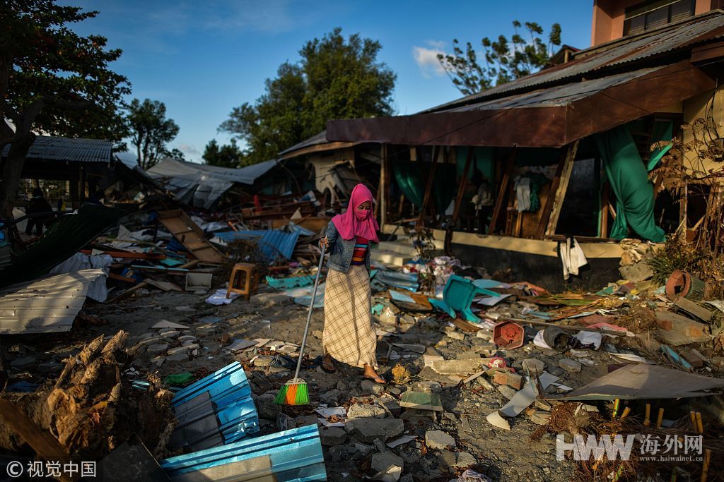 当地时间2018年10月8日,印尼帕卢,当地地震海啸灾区一片狼藉。