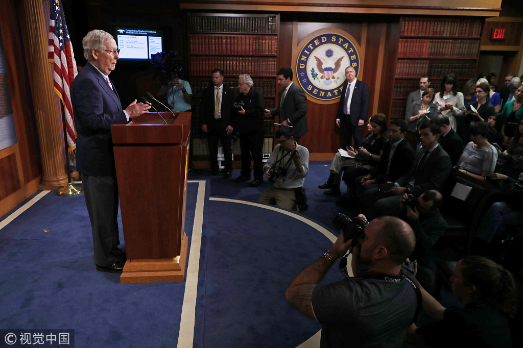 当地时间2018年10月6日,美国华盛顿,美国参议院多数党领袖麦康奈尔在最高法院大法官候选人布雷特·卡瓦诺的提名确认投票后召开发布会。卡瓦诺当天最终通过了参议院的确认投票。其中,赞成50票,反对48票。5日,美国参议院以51票支持、49票反对通过了一项程序性投票,推动进行有关卡瓦诺提名确认的投票。(图片来源:视觉中国)