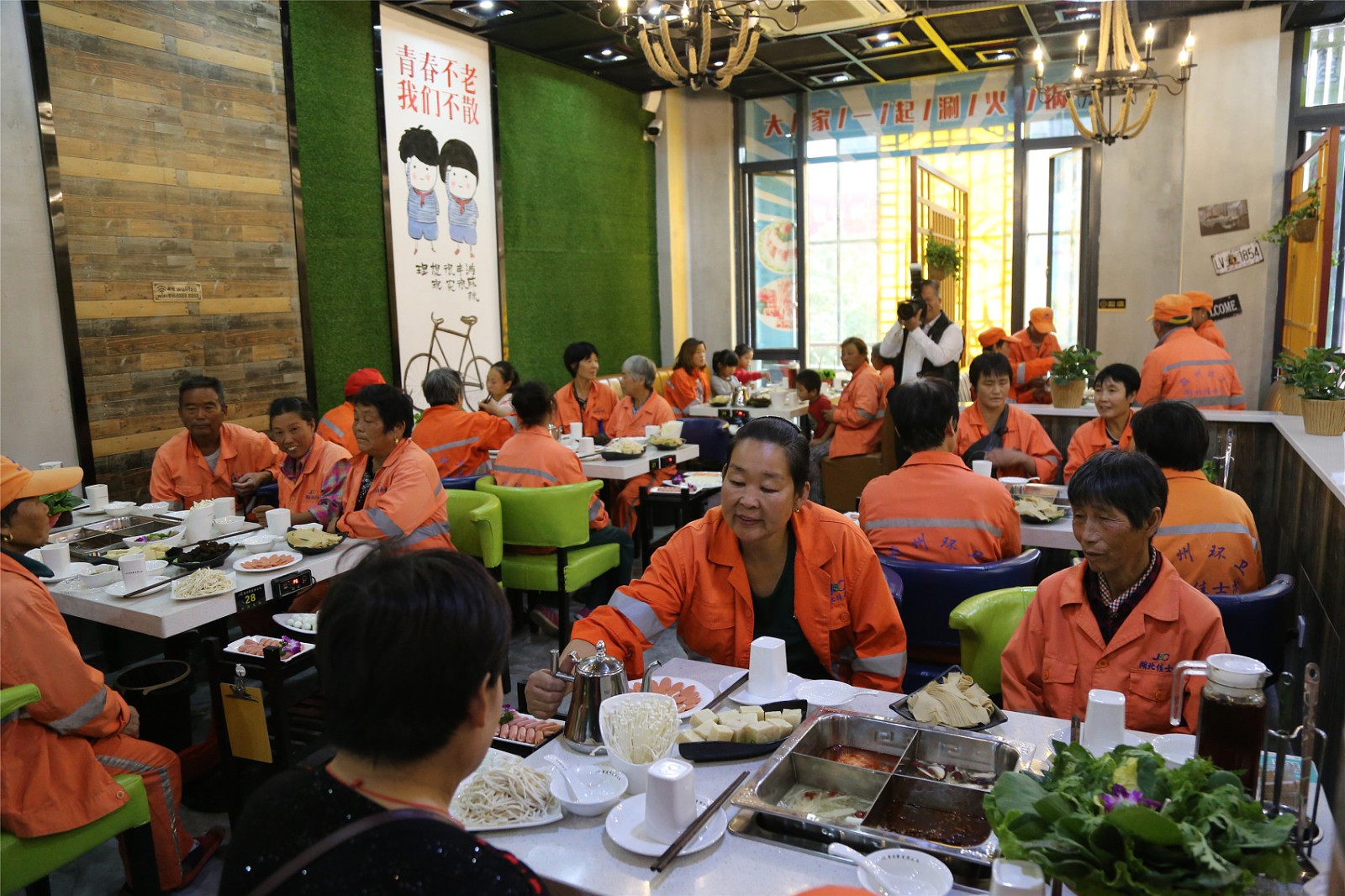 假期辛苦了!店家请300环卫工免费吃火锅